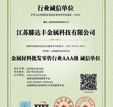 江蘇滕達(dá)豐金屬制品有限公司是成立于國(guó)內(nèi)經(jīng)濟(jì)蓬勃發(fā)展、不銹鋼需求急劇增長(zhǎng)的二十一世紀(jì)初,公司地處風(fēng)景秀麗的太湖之畔—無(wú)錫,地理位置優(yōu)越,交通便利。是一家集不銹鋼材料批發(fā)與材料加工、倉(cāng)儲(chǔ)、配送為一體的大型不銹鋼工貿(mào)型企業(yè)。公司坐落在不銹鋼交易集散地之一的無(wú)錫,公司現(xiàn)與山西太鋼、寶鋼、昆山大庚、張浦、聯(lián)眾等諸多知名鋼廠建立長(zhǎng)期穩(wěn)定的合作關(guān)系。